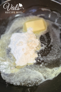 - In a saucepan over medium heat, melt the butter, whisk in flour and salt, and cook for about a minute until the raw flour taste is gone.