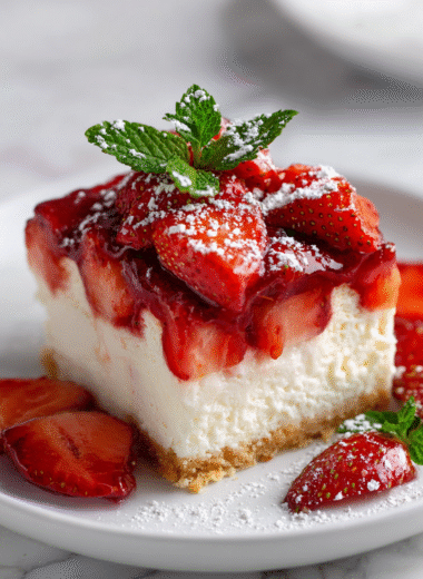 0 commentsThis strawberry cheesecake cake is my way of merging two childhood favorites into one show-stopping dessert. I love how the creamy, tangy cheesecake layers contrast with the bright, juicy strawberries, …
