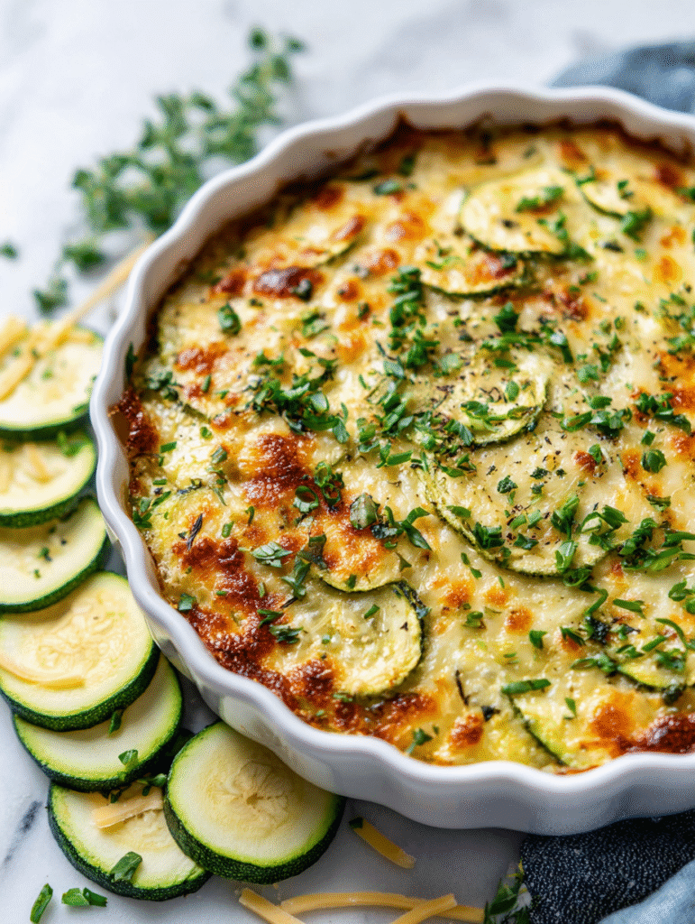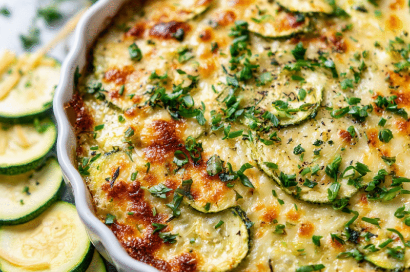 Focusing on transforming humble zucchini into a rich, cheesy comfort dish that feels indulgent yet light, perfect for using up garden harvests or store-bought zucchinis before they spoil.
