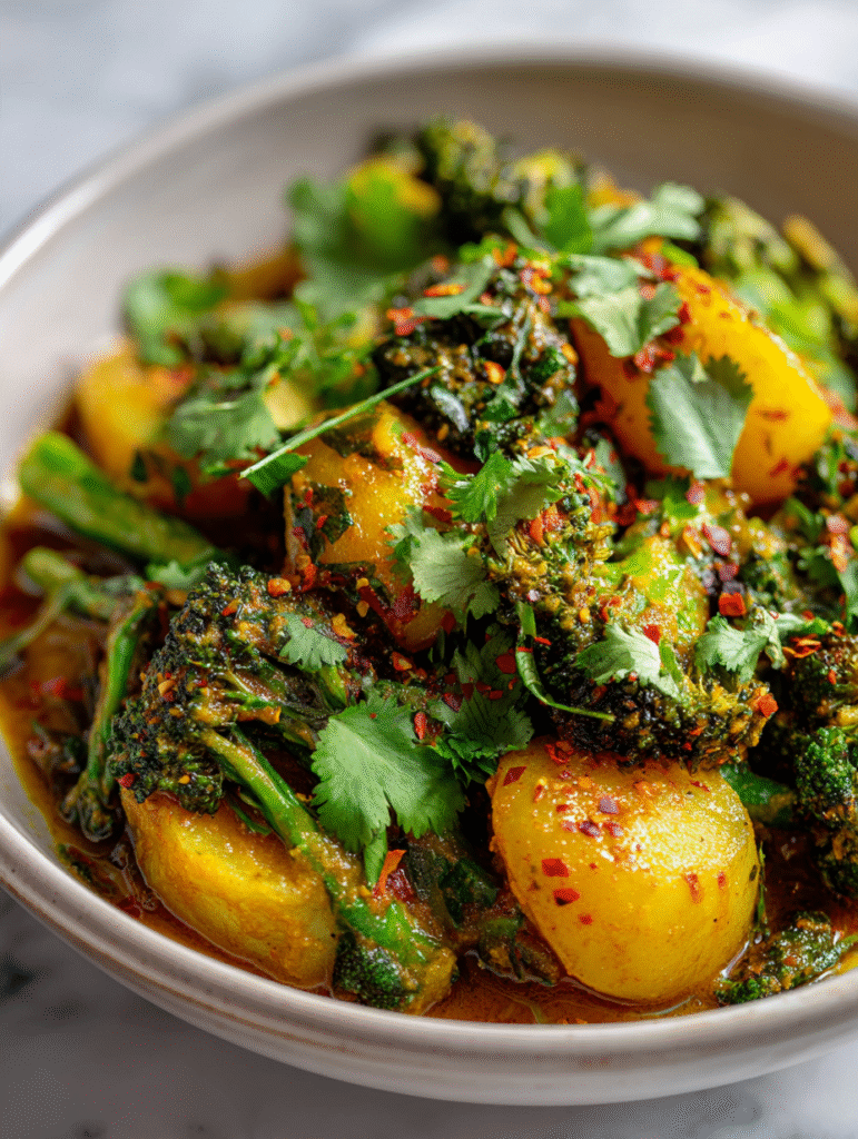 Cooking this curry is like a little ritual that grounds me—peeling potatoes, chopping broccoli, and stirring a fragrant, simmering pot that fills the kitchen with a spicy, earthy aroma. It’s straightforward, honest cooking that doesn’t fuss, yet delivers on deep flavor and comfort. Perfect for when you want something nourishing but not complicated.