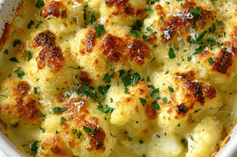 Let the baked cauliflower sit for 5 minutes before serving. Sprinkle with extra herbs or cheese if desired for presentation. Serve hot, accompanied by a simple salad or crusty bread.