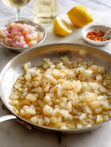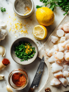 - Gather all your ingredients and prep the seafood by peeling, deveining, and chopping herbs; zest and juice the lemon.