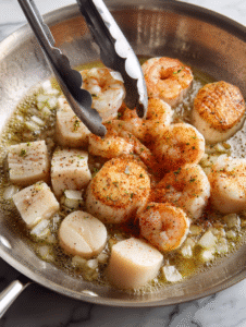 - Large skillet or shallow pan: To cook the seafood and make the sauce in one pan.
