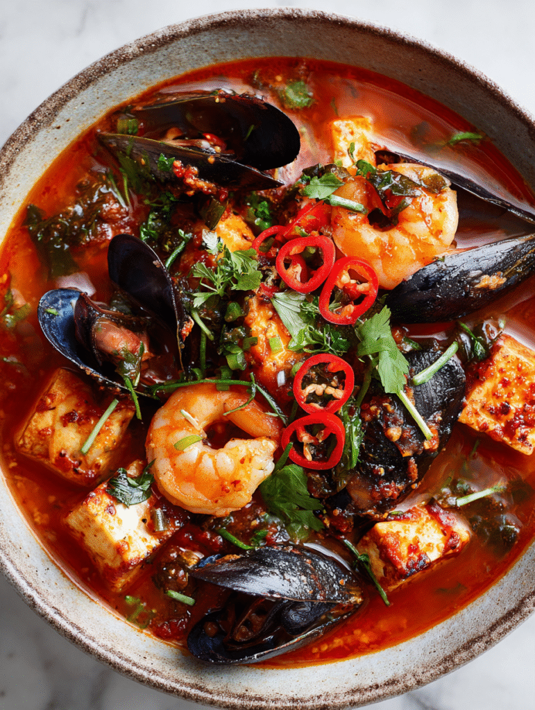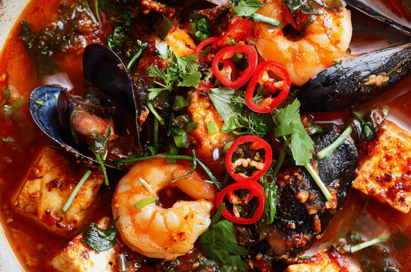 - Check the seafood for doneness—should be opaque and firm—then give the stew a final taste and adjust seasoning if needed.