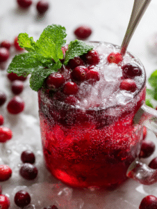 Step 5: Garnish with fresh cranberries and a sprig of mint for that festive look and extra aroma.