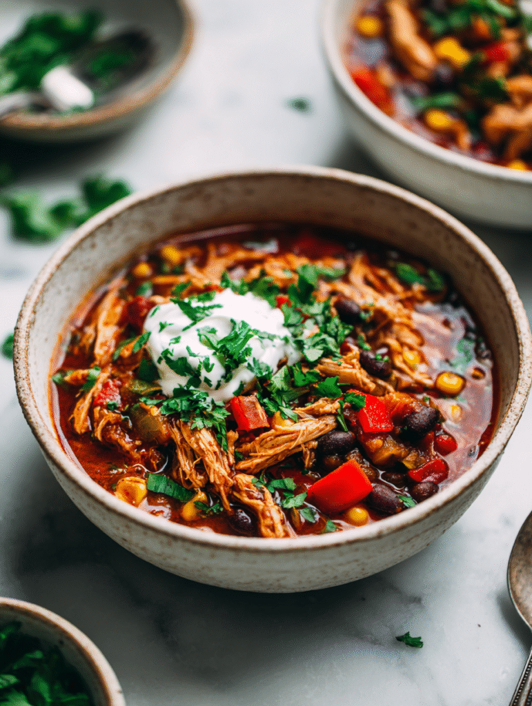 - Bolded tip: Shred chicken after cooking—use two forks, it should fall apart easily and meld into the chili.