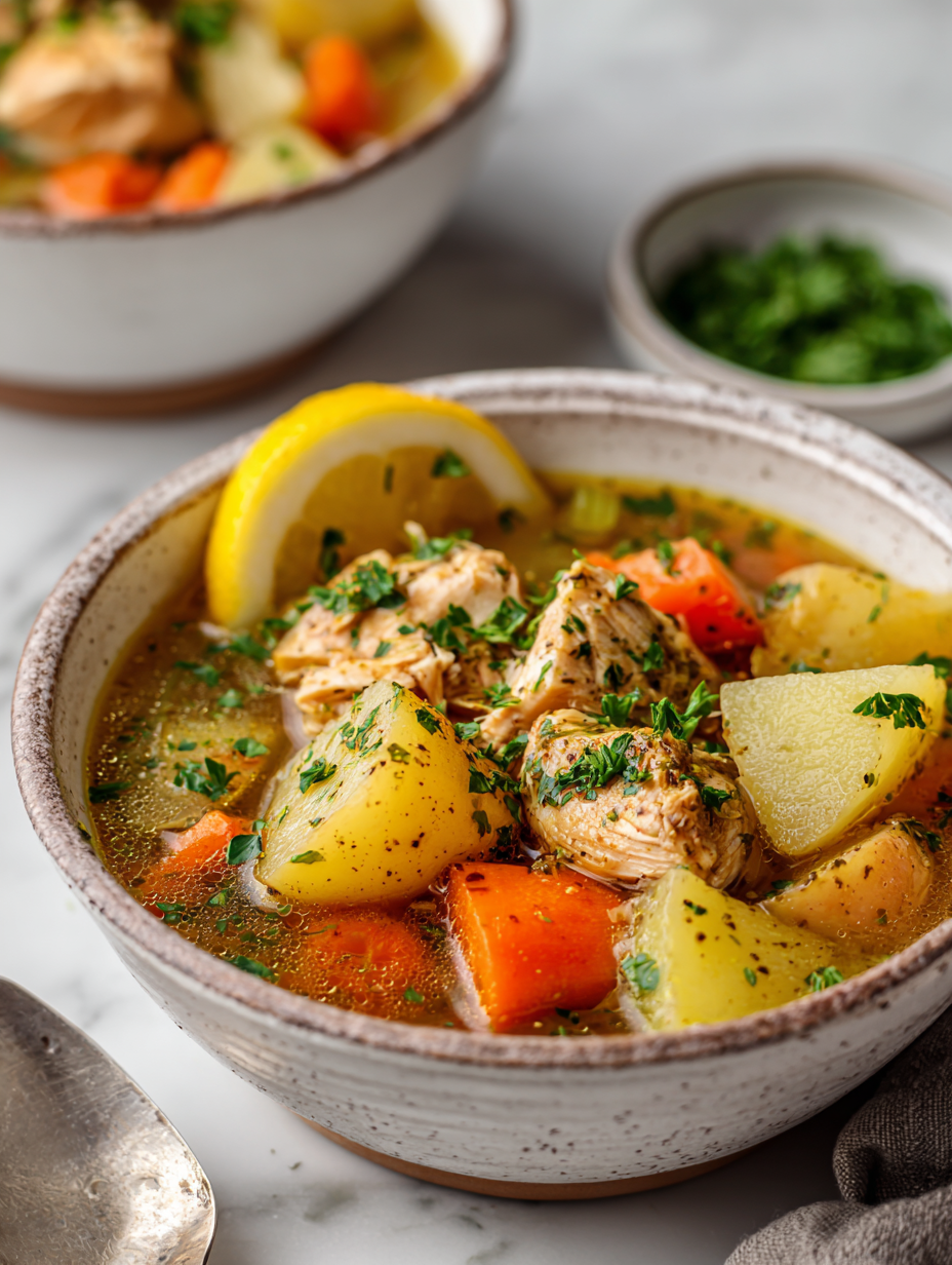 - Gently stir the stew to combine the flavors and serve hot in bowls. This dish has a thick, hearty consistency with fragrant herbs and melt-in-your-mouth chicken, perfect for cozy evenings.