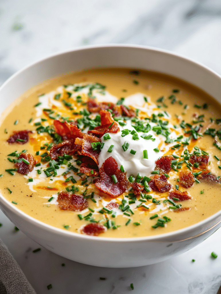 - Let the soup rest for 5 minutes off heat so flavors meld and it thickens slightly. Ladle into bowls, garnish with bacon or herbs if you like, and enjoy the warm, velvety goodness.