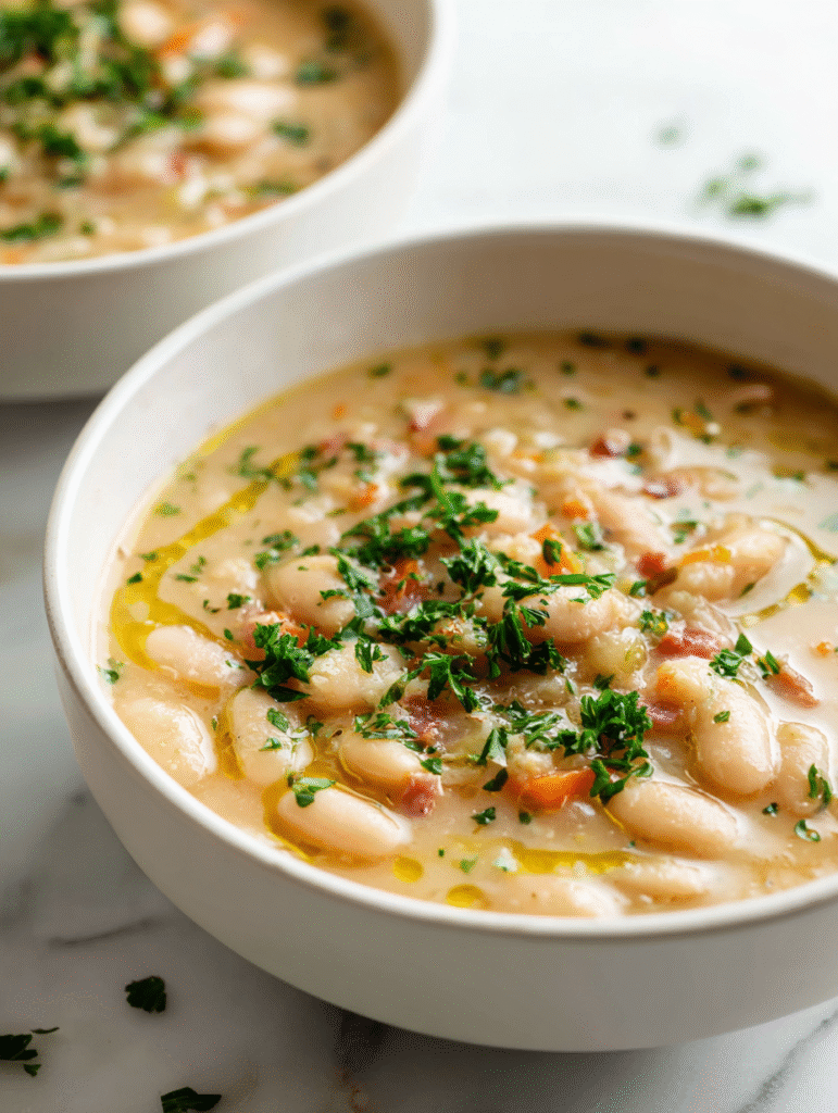- White beans: I prefer using dried cannellini or Great Northern beans for their creamy texture; soak overnight for softer, more even cooking. If you’re short on time, canned beans work, but rinse well to remove excess salt.