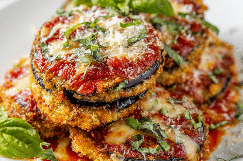 Allow the baked eggplant Parmesan to rest for 10 minutes before slicing. This helps the layers set and prevents everything from sliding apart. Serve with a sprinkle of fresh basil or extra Parmesan for presentation.