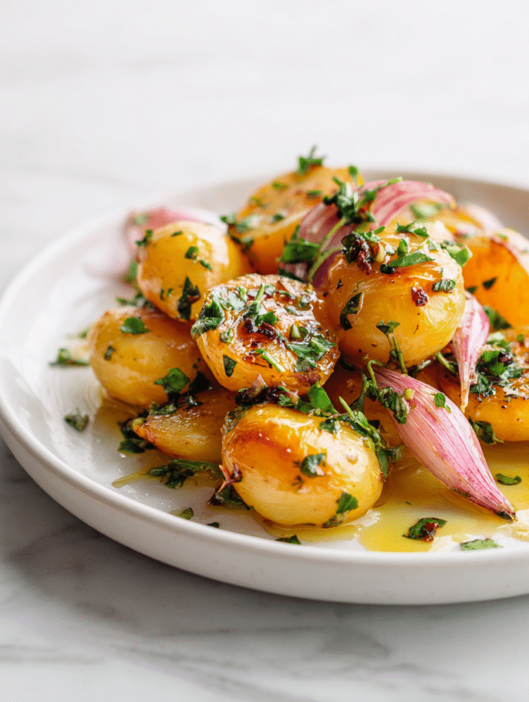 8. Remove from oven. Let rest for 2–3 minutes to allow flavors to settle. Serve warm, drizzled with any leftover garlic oil.