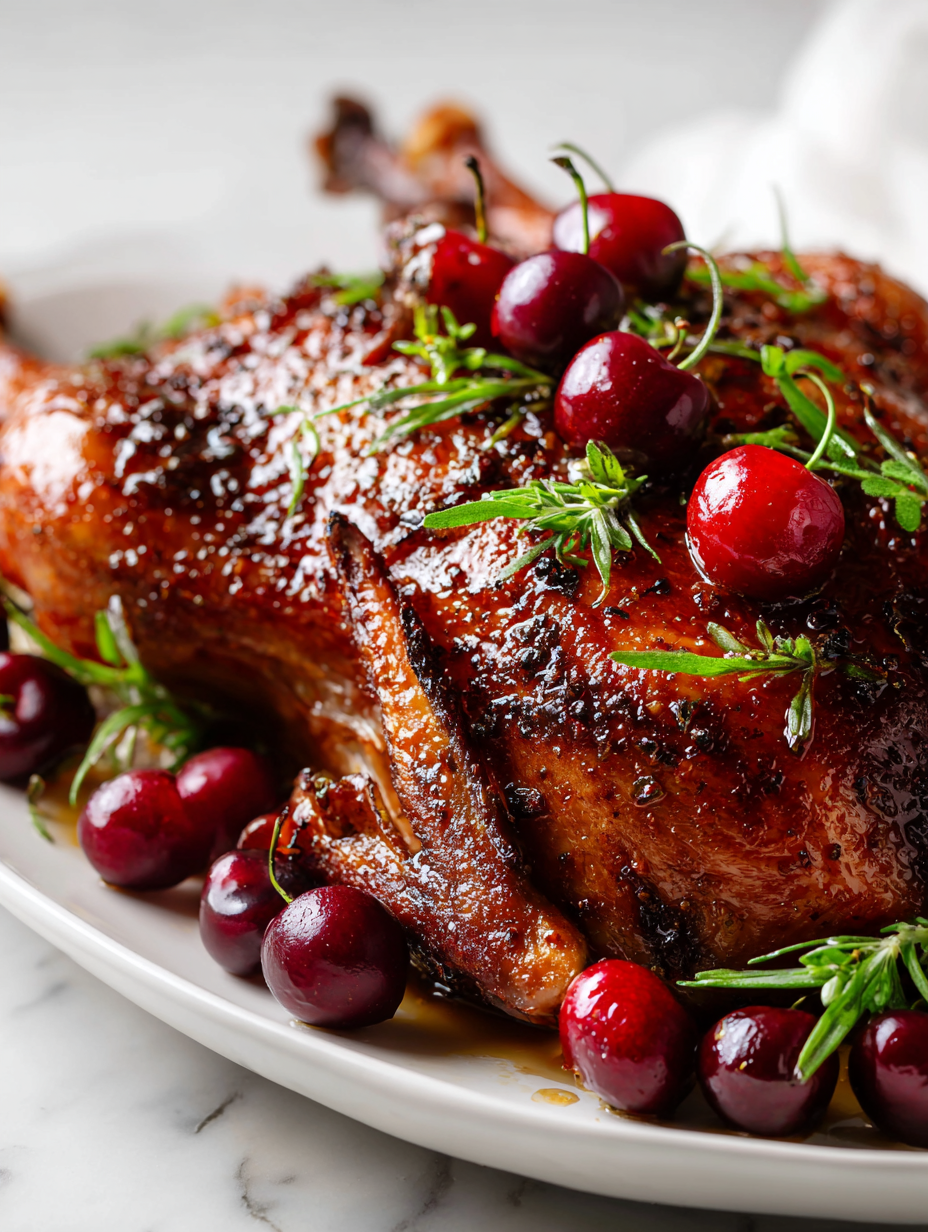 Spiced Holiday Roasted Duck with Cherry Glaze