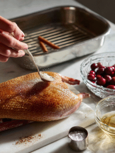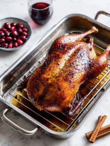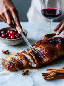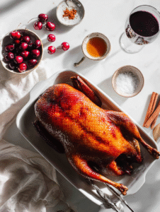 Roasting a whole duck feels a bit like a rite of passage in the kitchen. It’s imperfect, messy, and full of surprises—kind of like the holidays themselves. This recipe leans into that chaos, turning a sometimes intimidating bird into a manageable, flavorful centerpiece. Plus, the spiced cherry glaze adds a festive, unexpected twist.