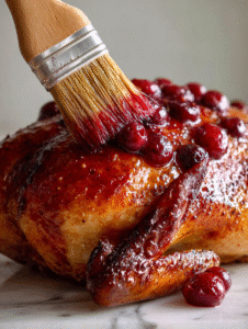 - During the last 20 minutes of roasting, brush the cherry glaze generously over the duck using a basting brush, allowing the glaze to caramelize slightly and create a glossy finish.