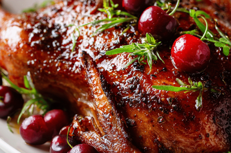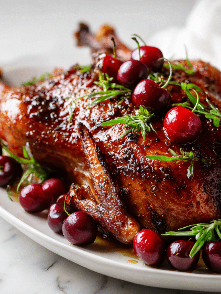 Spiced Holiday Roasted Duck with Cherry Glaze