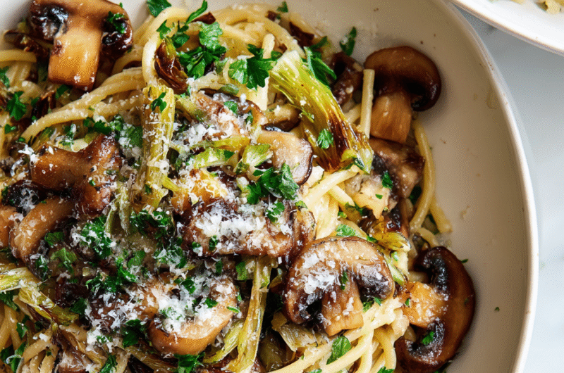 This pasta recipe is all about the slow, patient process of caramelizing leeks and mushrooms. I’ve found that taking the time to let them gently brown really deepens their flavors, turning humble ingredients into something unexpectedly rich and satisfying. It’s a ritual that rewards you with a warm, fragrant dish that feels like a cozy hug in a bowl.