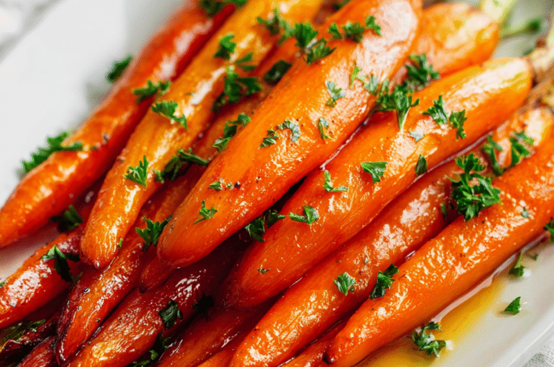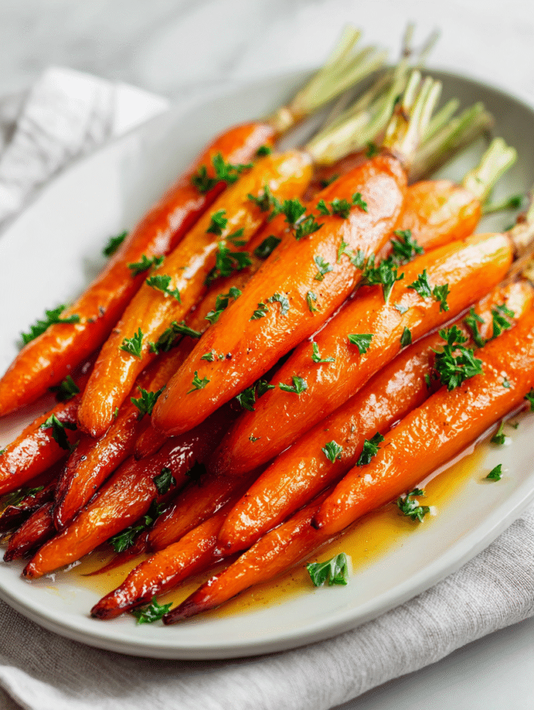 Let the carrots rest briefly on the sheet. Serve warm, drizzled with any remaining glaze. For extra flavor, sprinkle with flaky sea salt or chopped herbs if you like. They’re best eaten within an hour for maximum caramelized goodness.