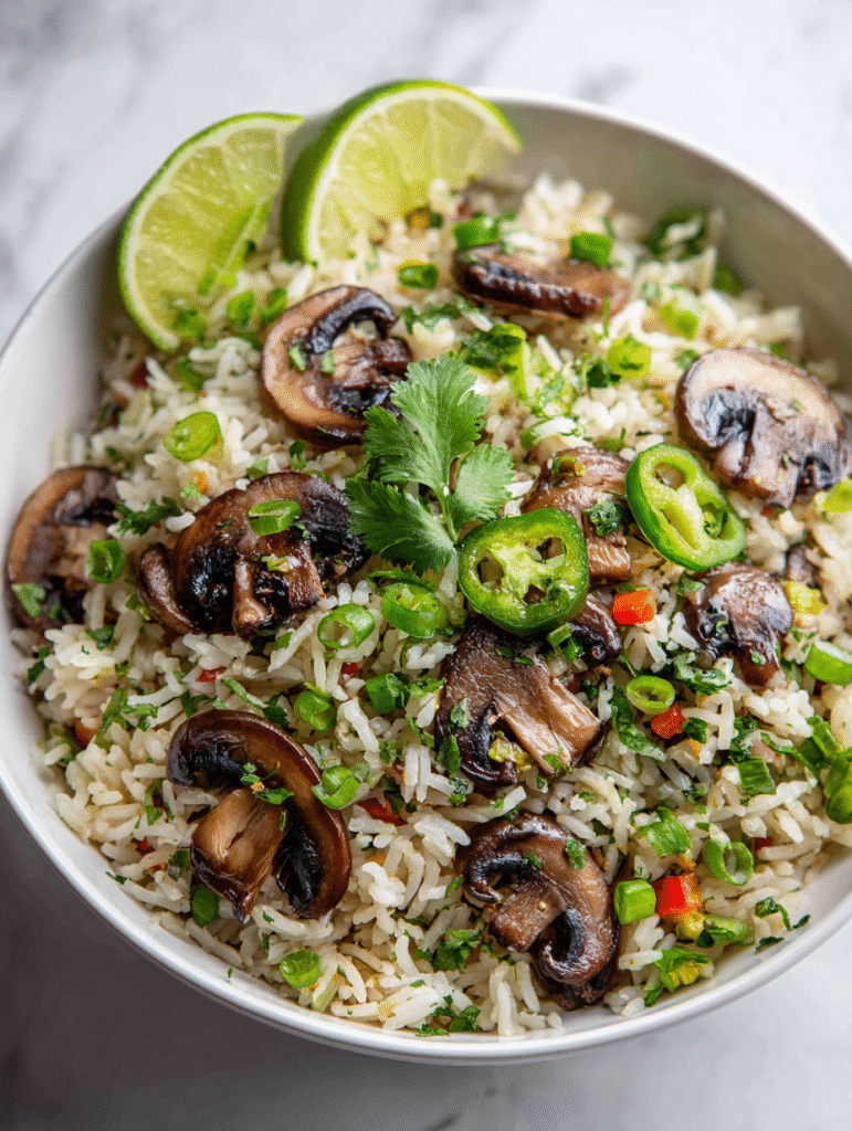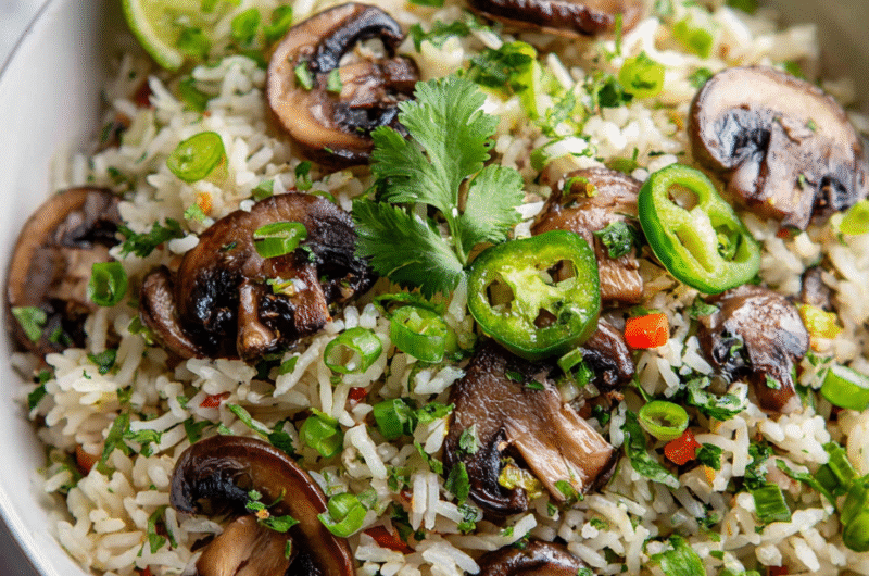 To make ahead, chop mushrooms and green onions a day early; store separately. Reheat fried rice in a hot skillet, stirring until steaming—listen for that crackling sound and smell that toasty soy aroma.