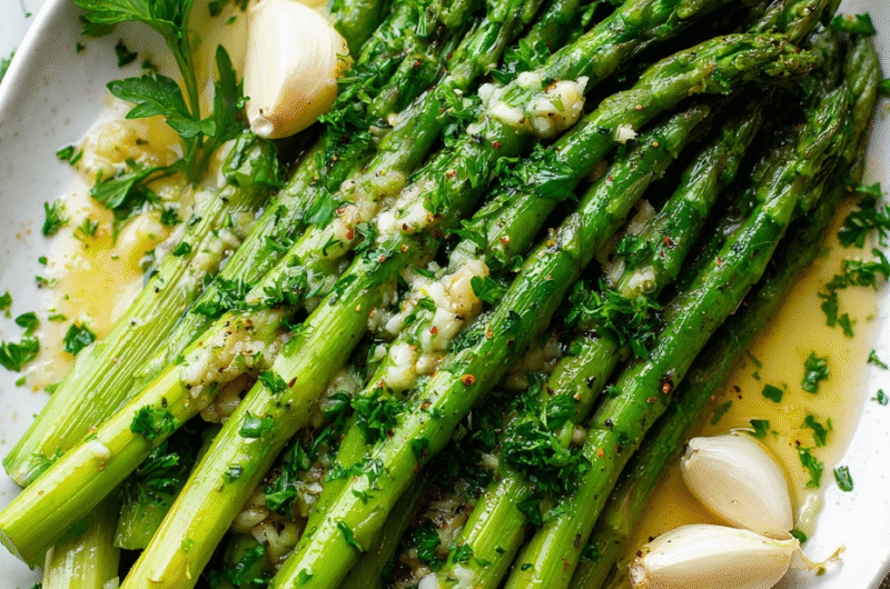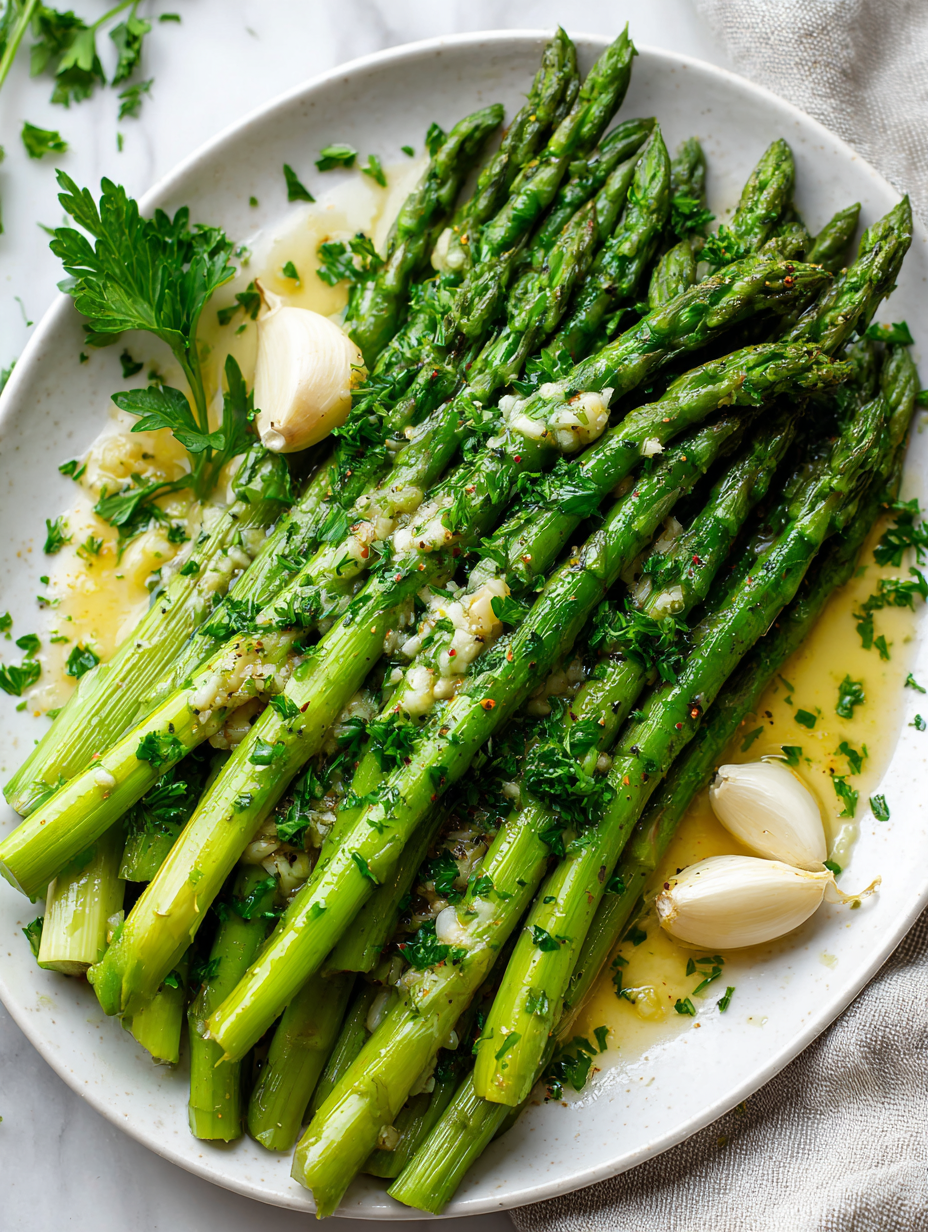 Focusing on the overlooked importance of the garlic butter coating in elevating simple asparagus, making it a rich, sensory experience that transforms a humble side into something unexpectedly indulgent.