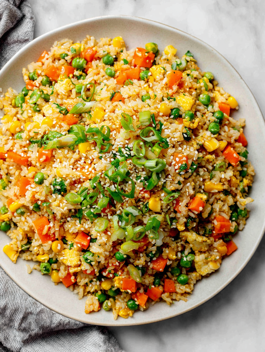 • This vegetable fried rice came about during a particularly chaotic week when I had a fridge full of odds and ends but no clear plan. I started tossing in whatever veggies I had—some wilted spinach, a lonely carrot, bits of broccoli—and it turned into something surprisingly satisfying. That moment made me realize how forgiving and adaptable this dish can be, even with ingredients that seem too tired for anything else.