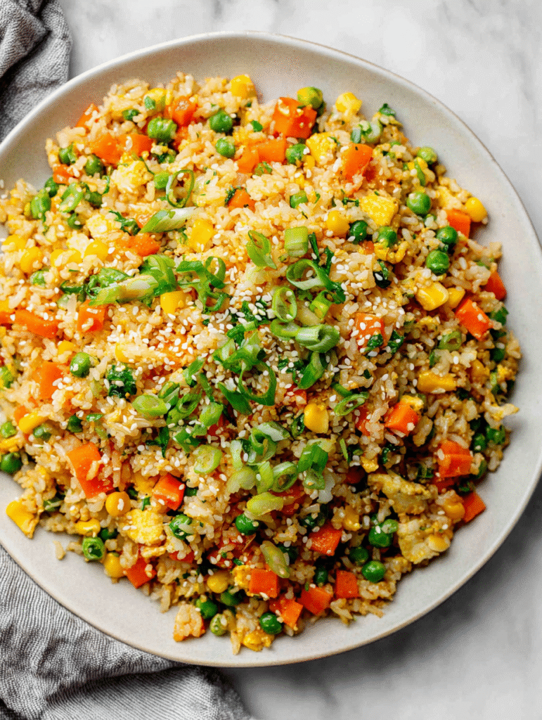This vegetable fried rice is my go-to way to clear out the fridge. I love tossing in whatever odds and ends of vegetables I’ve got—carrots, peas, bell peppers, you name it. It’s a bit of a kitchen puzzle, but that’s part of the fun, turning scraps into something filling and colorful.